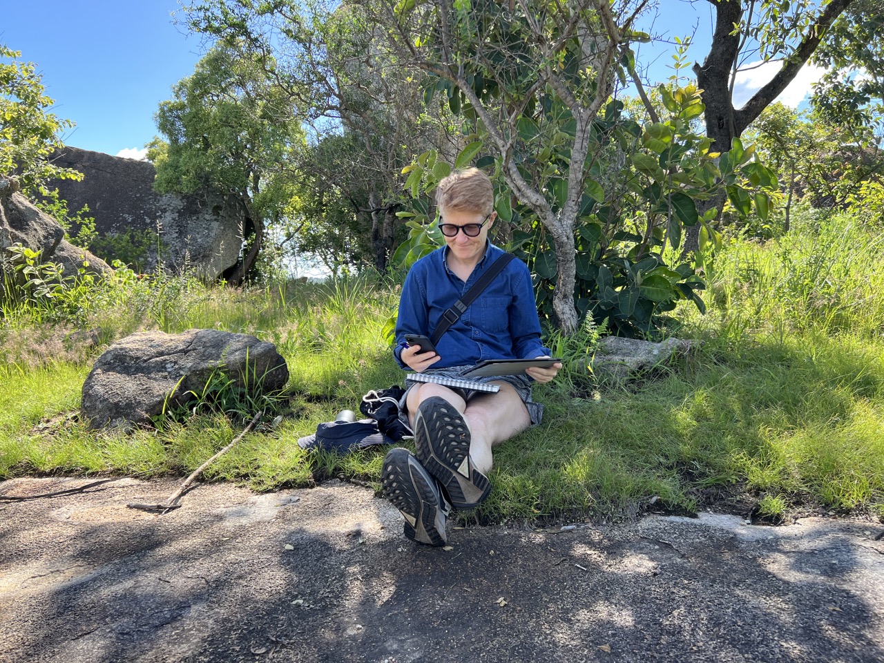 After the initial set-up, I set out to do the payment test on January 1, 2024. 30 km out of the capitaI Harare, I strolled through the scorching heat, making my way up to the kopje, navigating through rocks, grass, bushes, and trees. My friends were captivated by the beautiful flowers that bloom as soon as the rainy season begins. My focus, however, was on finding a decent internet signal for my two phones. Having prepared the test back in Harare, I was eager to carry it out in this setting.