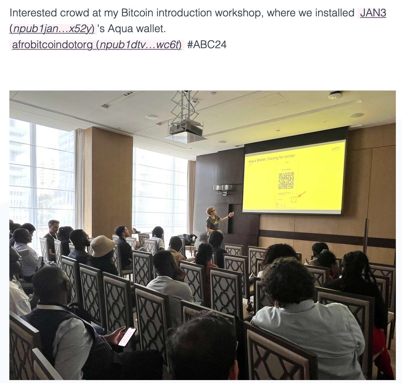 At the third edition of the African Bitcoin conference ABC2024, I led a workshop for Bitcoin beginners, introducing newbies to the basics of Bitcoin and installing a wallet.