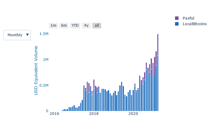 There has been a lot of back and forth about Nigeria banning banks to interact with cryptocurrencies in the last weeks. In March the Central Bank of Nigeria (CBN) declared that there was no time the bank banned the activities of Cryptocurrencies in the country (Source). Well, anyhow: Nigerians don't care as you can see from P2P trading volume.