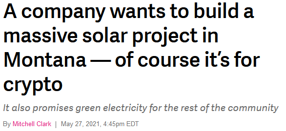You can't make this up and it shows the absurdity of the discussions around Bitcoin mining. The Verge is running a story about a new solar power plant in the USA, which is incentivized by cryptocurrency mining while at the same time bashing the project, because it will be used for mining - in the subtitle it adds: It also promises green electricity for the rest of the community.